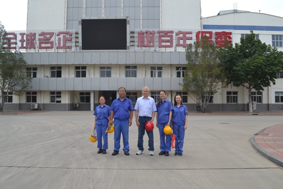 保变电气设计人员与美国太平洋公司资深监造专家在厂房前合影
