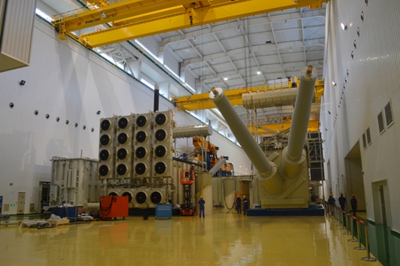 t2特高压试验大厅正在进行扎鲁特-青州±800kv特高压直流输电线路工程高端换流变试验